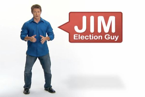 Why is our modern political discourse conducted at such a high grade-level? Americans cannot follow it! They did not pay attention in school; they strung themselves along doing next to nothing until they could land themselves a lifetime job of menial labor, which is what you're supposed to do. YOU ARE ENTITLED TO STUPIDITY IN AMERICA JUST AS YOU ARE ENTITLED TO APPLE PIE AND VAGINAL INTERCOURSE. Knowing this, and knowing people's hatred of ideas that could complicate or change their political beliefs, Michele Bachmann has optimistically decided to make it easy for us. Here is Jim the Election Guy! He will be with you through this entire campaign to hold your hand! First up: Bachmann's opponent