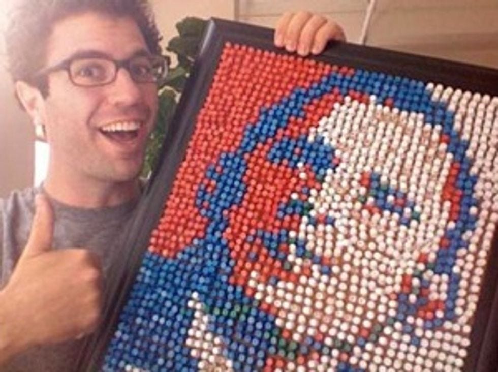 Hey, it's the middle of June and there's no political news because it's summer and your editor just went over to Boing Boing to see if there was anything politically whimsical and your co-editor said, "Obama robots made from jello and spare microchips?" Yeah, pretty much. Here is Hopey made out of push-pin thumbtacks. [ Zoomdoggle via Boing Boing ]