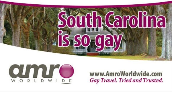 Guess who's paying for this daring piece of Gay Travel advertising? The taxpayers of South Carolina! Yukyukyuk...