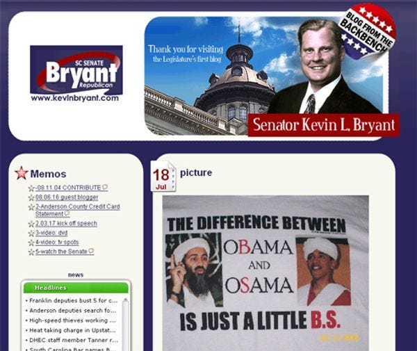 South Carolina State Senator Posts Dumb Anti-Obama Tee Shirt Pic On His Blog
