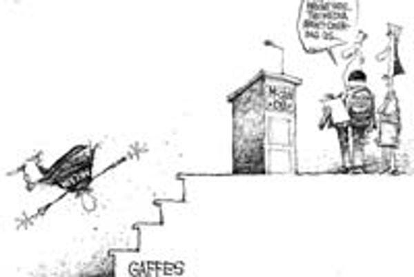 Like everyone in the liberal media, your Wonkette has been following every minute detail of the ascension of our next president, Barry Jesus Obama. But did you know that there needs to be an "election" before Obama can become president, and that there is another person also seeking this high office? His name is "John McCain," and it seems that he was in a war[Korea? Philippine Insurrection? Research! --Eds]and maybe also in Congress. In our attempt to bring you complete coverage of Obama's election, we are presenting all the information currently available on this elusive McCain individual. There are no known photographs of McCain, possibly because his primitive cultural beliefs forbid them, but we at least have these crude depictions from America's political cartoonists.