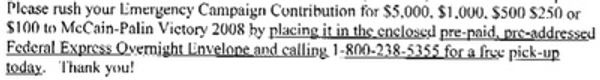 There are probably piles of these pre-paid FedEx mailers sitting outside the abandoned headquarters of Lehman Bros., too. Why not pick up a few and send McCain your "donation"?