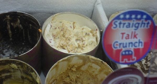 Poor old John McCain can't even win a stupid ice cream contest. Wonkette Operative David sends us this sad report: "Apparently, Baskin-Robbins has been holding a national Flavor Election, which is kind of like an election where only fat, diabetics can vote (Kinda like the real election?). Anywho, the not only did Obama's Whirl of Change trounce The Straight Talk Crunch in national polls — ice cream is in the tank — but it seems like nobody is fucking eating McCain's horrible Ice Cream. ... Even the french vanilla with egg yolk got more love (yuk)."
