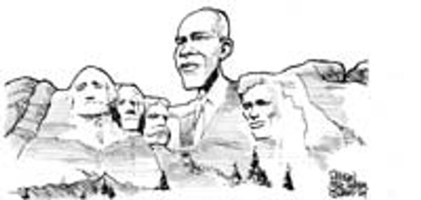 The first stop for the rampaging mega-Obama: South Dakota! You might recall that South Dakota was looking pretty close in the polls, before ultimately voting for McCain (no doubt because he offered up his wife for the state's sexual gratification.) That puts it first on the list of states to be crushed under the terrible robot's feet. TREMBLE BEFORE MEGA-OBAMA, DAKOTANS!