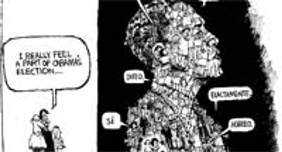 Now that the election is over and Barry Hussein Von Hopenstein has won, we can admit that as part of the vast media conspiracy, we were all thoroughly very deeply in the enormous tank. Also in the tank were all political cartoonists, except for a few, to whom we will not give equal time today, due to our in-the-tankness. But like all members of the media, the cartoonitariat is a fickle thing, and they are all beginning to show us the horror that awaits us under President Obama. Read on to find out how bad it will get ...if you dare.