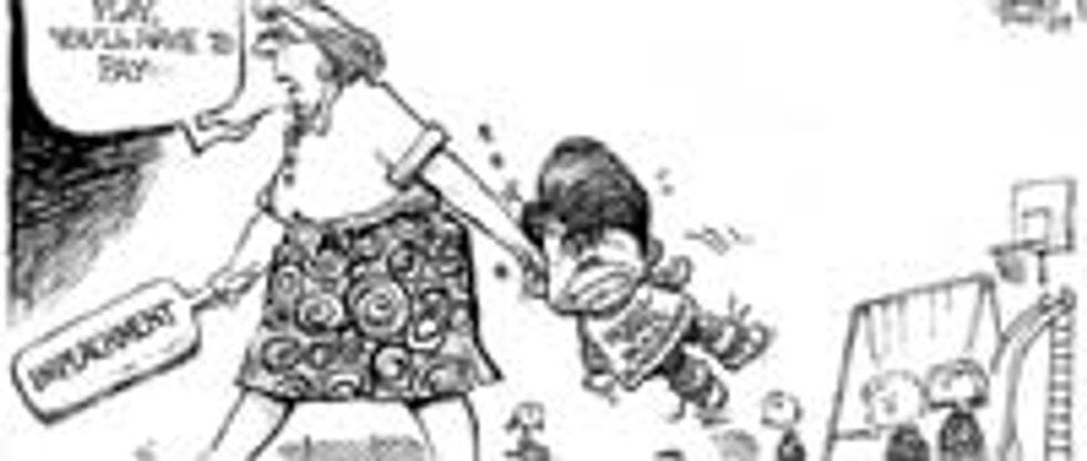 So did you hear that Rod Blagojevich, America's noblest, most sexually potent governor, was removed from office yesterday, because of racism, or maybe jealousy over said sexual potency? Everyone loved Blago -- minorities, poor people, what have you -- but nobody loved the lovable lug more than America's political cartoonists. Why was that? Was it his noble struggle against impossible odds, which reminded them of themselves? Was it his transparent scumbaggery, which allowed for a disdainful bipartisan free-for-all? Was it the hair? It was probably the hair.