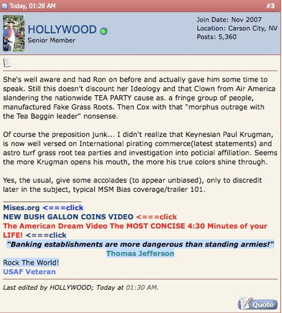 You can imagine the mood at Ron Paul Forums these days. Here's sexy poster "HOLLYWOOD" complaining about the Corrupt Republican Hijacking of their testicle-sucking idea, in the context of something that happened on The Rachel Maddow Show last night -- you know, like when Maddow and her sniveling sidekick "Cocks" MADE UP LIES ABOUT RON PAUL?