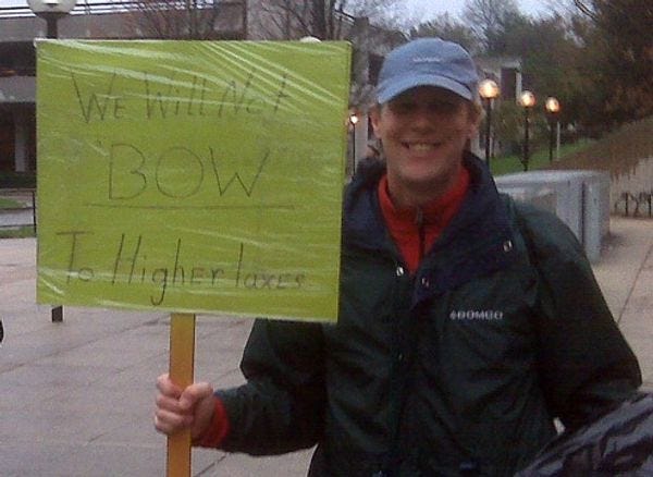 Ladies and gentlemans the day has finally arrived! Paultards and Birthers and "Don't Tax Me Bro"s and even the reclusive Santelliosos shall gather, in our nation's capital and in other godforsaken places such as central Texas, to register their frustration with whatever the fuck. Our own Ginger Terror, Jim Newell, will be on the ground somewhere in DC trying not to get murdered. Boston Buddy Garrett Quinn promises updates from the place in Massachusetts where theactualtea party happened a million years ago, while commenter InsidiousTuna sends hot pixxx 'n' updates from Waco to Teablogging.net and ShortsandPants, which maybe we will link to or STEAL. Are YOU going to one of these important protest events today? Please to send poetry, video, bags of tea, and photographs to tips@wonkette.com. We will probably ignore them.Photo via Shady Grove Metro Operative "Ethan."