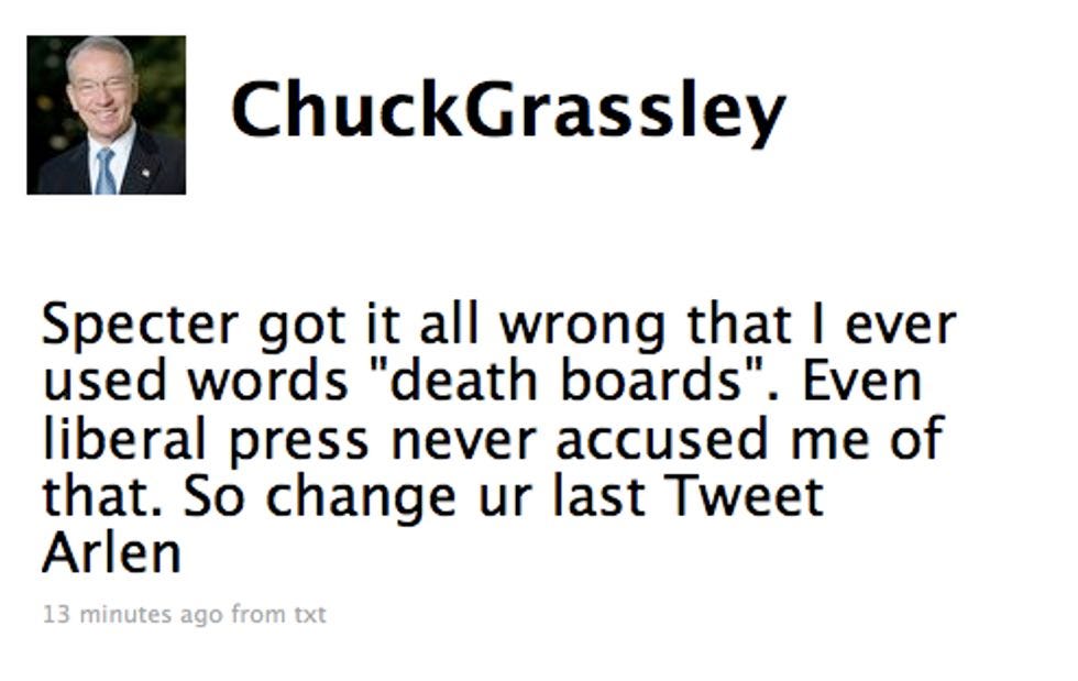 Evil Liberal Bloggers Strain Grassley, Specter Friendship, On Twitter