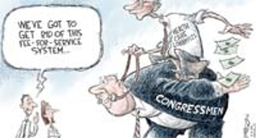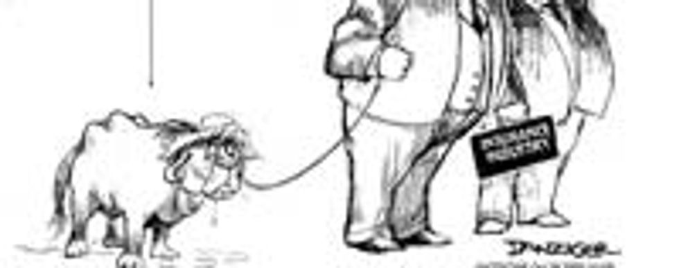 Do you ever go to your local public swimming pool and see the big signs hanging on the wall that say "NO HORSEPLAY"? You're probably assuming that this refers to the sort of light-hearted running and chasing games that kids at public pools used to engage in, before video games and mandatory child seats made them husky and listless. But in fact, these signs are forbidding anyone from engaging in sexual fetish horseplay of the kind depicted here, as that particular kink is, according to an obscure clause in Article I of the Constitution, only permitted to members of Congress. Most of us will never miss it, of course, but those who long to be saddled up by some pasty middle-aged dude, to feel the satisfying tug of the reins against the bit between their teeth -- well, they are forced to grimly work their way through the city council and the state legislature, putting in years of effort, before finally, finally getting to the august halls of the Capitol, where the carrots and sugar-cubes are plentiful, and there are no "NO HORSEPLAY" signs to ruin the fun.