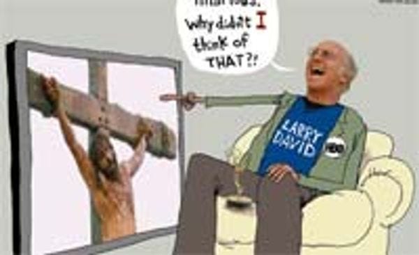 Meanwhile, back in America, some big-shot Hollywood Jew sure seems to think the crucifixion is funny!