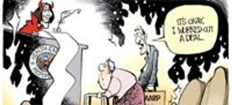 But Nancy Pelosi has tricked us (again)! While she purports to only be the High Priestess of some Satanic cult, in fact she is herself the Princess of Darkness, the Lady of Lies, Beezelbubette! While the mortal Congressmen are entertaining themselves with their erotic equestrian simulations, Nancy likes to go down to her infernal kingdom of flames and sulfur and unwind a little bit. Just as the Bible tells us, Satan likes nothing more than to prematurely claim the souls of honest, hard-working old people, with health care. She'll be tormenting them with her pitchforks and her strict coverage requirements for private health care plans for all eternity, and there's nothing you or the AARP can do to stop her!