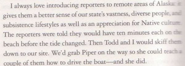 A top secret super secret Wonkette operative has sent us photos of pages 379 and 380 fromGoing Rogue! Here is the part where Piper Palin kidnaps every liberal reporter in America on her boat and feeds them to the ancient Ice Goblin who lives five nauts upstream. What else is on these two particular pages of bullshit... meh.