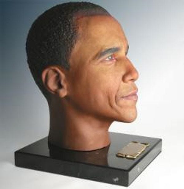 Says wonderful cremation website Cremation Solutions: "Now we can create a custom cremation urn in the image of your loved one or favorite celebrity or hero, even President Obama!"