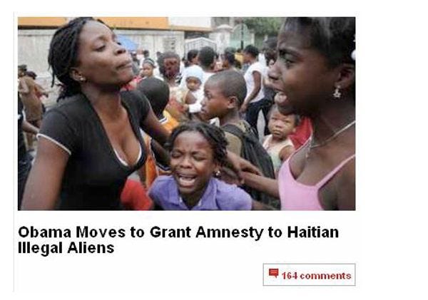 GRRR, BARACK OBAMA MAKEY SO ANGRY! Now let's compare this Fox headline to a grown-up's headline: "Obama halts deportations of undocumented Haitian immigrants, urged to grant 'protected status.'" So what Obama is doing, at the urging of most rational, humane people, is halting Haitian deportations during a humanitarian crisis back in Haiti. It's a fairly standard practice. UNLESS YOU'RE FOX! Wokka wokka! [Media Matters ]