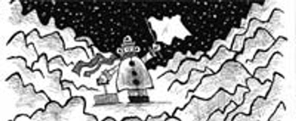 Of course, in terms of nuance, that first cartoon is the equivalent of an Axe Body Spray ad that's all like "Spray this stuff on ya and you'll be fuckin' in no time." In contrast, this one is like an overwrought Obsession commercial from the late '80s, all dramatic shadows and funny camera angles and overloaded signifiers. Observe our climate nerd, wielding his mighty shovel of Science! He emerges from his (carbon-spewing?) chimney, only to find the Snow of Incontrovertible Truth blanketing the land! The sun, low in the west, "manipulates" the length of the chimney's shadow! But what of the squirrel? What does the squirrel represent, with its beady, inscrutable eyes? Are we meant to know? Or does it represent the complete absence of knowledge, of certainty?
