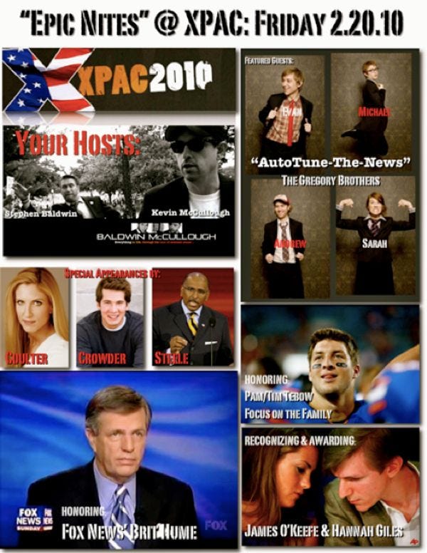 CPAC STARTS IN TWO DAYS THANK GOD. It is the most blessed time of February, when the CPAC comes to town to get the folks all hot and bothered about blacks and browns and John McCain. Last year they invented teabagging! Furries were everywhere, and then they all went and fucked each other at night with rosary whips and chili powder. This year's evening entertainment will be the exact same thing, but with enhanced organization. They're introducing XPAC, the XTREME conservative cumslapping foam death party. Can you handle it,grandpa?