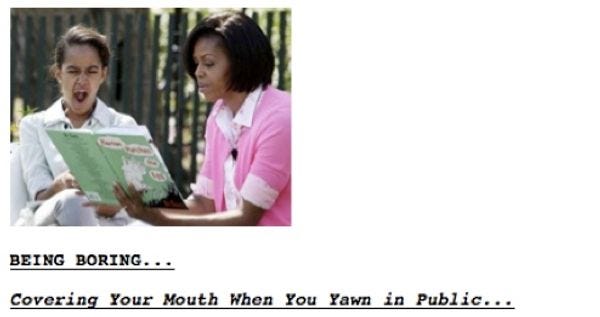 There are many important pieces of advice in this thread from which Malia Obama can learn some fucking manners. This, especially.