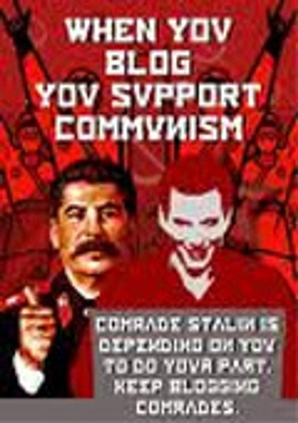 What a perfectly irrelevant string on non-sequiturs, straw men and ad hominems. I know Wonkette exists to make fun of everything, but how historically uncoupled is the Left when it can un-ironically condemn the Right for its Soviet nostalgia?