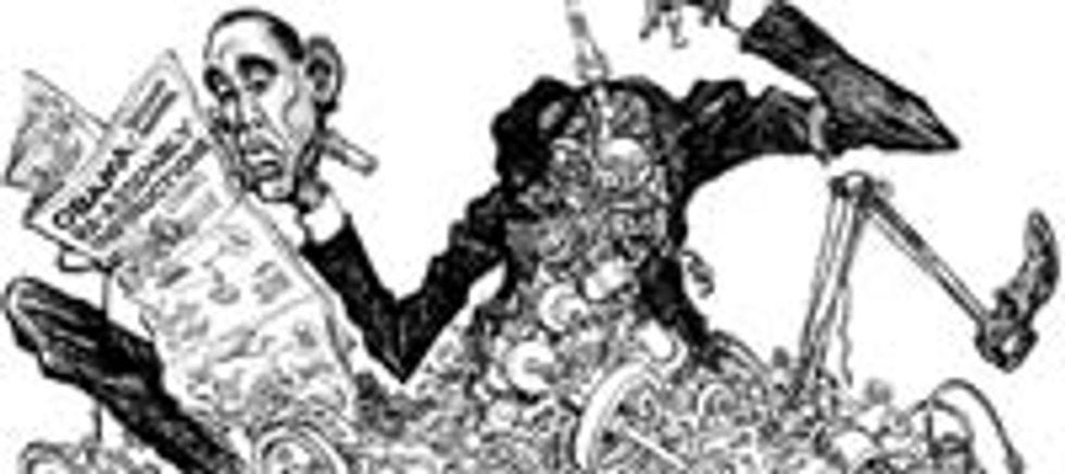 And yet who will run the country, now that the Obama-Sestak bird is dead? Certainly not Joe Biden, ha ha! No, the White House fortunately has a large store of Obama-robots. Unfortunately, with government inefficiency being as it is, the Obamandroids are all kept disassembled, for "easier storage." The White House staff, being composed mostly of useless humanities majors, proved unable to piece together the cybernetic bits to create a fully functioning president, so eventually the half-built metal beast had to brush them aside and finish the job itself.