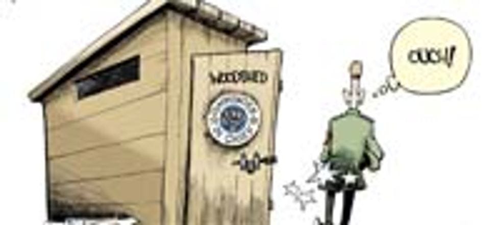 But wait, who's in charge of the war while all this selfish hedonism is going on? Well, don't you worry, Obama's got it taken care of. For instance, when he heard that Stanley McChrystal was going around bad-mouthing him, he did the only thing he could: take him out to the ol' C-in-C outhouse, and then very sternly sodomize him. Then Obama fired him, because don't-ask-don't-tell hasn't been repealed yet!Ironic,huh?