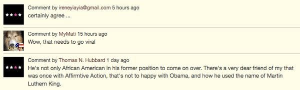 It is pretty cool that this guy managed to round up ALL existent black Republicans for this film. It's like a family reunion! They all seem to make a lot of sense, so Democrats should be very afraid.