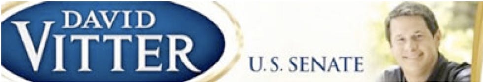 Up next in our survey is Louisiana Pampers consumer David Vitter, who is facing a primary. That means he has to be tough on both muslins and Melancons in his e-newsletter, which uses this banner: