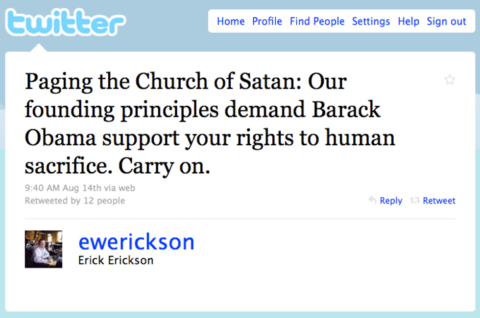 Lastly, Erick Erickson compared the building of mosque to a human sacrifice. And also jihad (but not Santeria or "voodoo economics"):