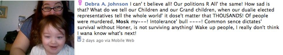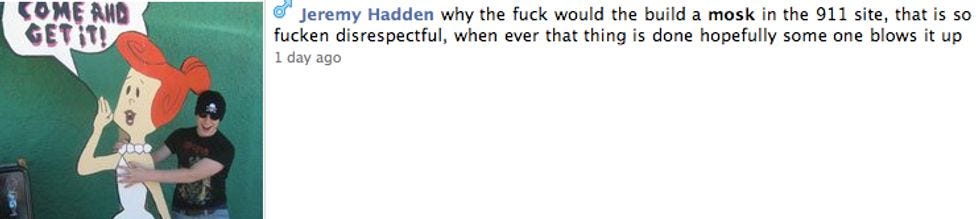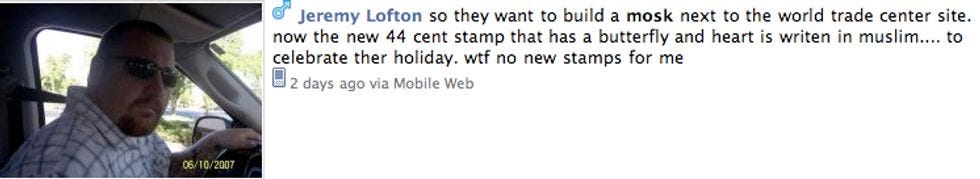 If you're going to spell "mosque" incorrectly, why not spell the entire message incorrectly? Then you can pass on those spelling skillz to the next generation and be intolerant when they try to get their own ideas about how to spell words.