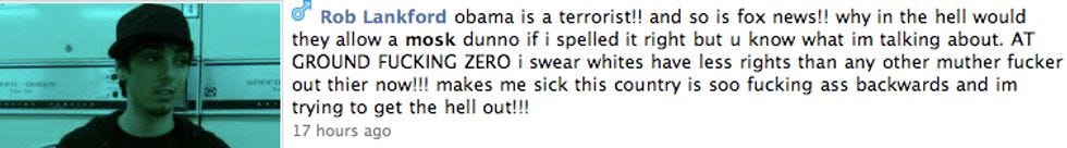 Oh look, this man is also planning a terrorist attack on an American building, right here on Facebook. He should get together in a terrorist cell with the Wilma boob-grabber.