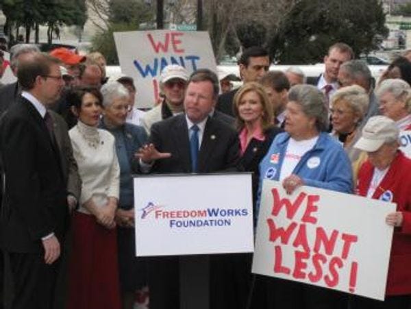 FreedomWorks is a sparkling beacon of truth, a special Made In China sweatshop beacon that turns into a Dick Armey-shaped sponge when you place it in a glass of water. So why do liberals keep emailing FreedomWorks hateful messages such as "eat a turd sandwich and then drop dead, preferably at this very moment"? It's gotten so bad that FreedomWorks has decided to move its headquarters. Ha ha, in your face liberals, now the MAILER-DAEMON will return all of your hatemails because sorry, wrong email address, FreedomWorks has moved across town! Oh also maybe FreedomWorks is moving because its lease is up and it found a cheaper place to live so really it has nothing to do with fleeing from liberal death threats? Sigh.