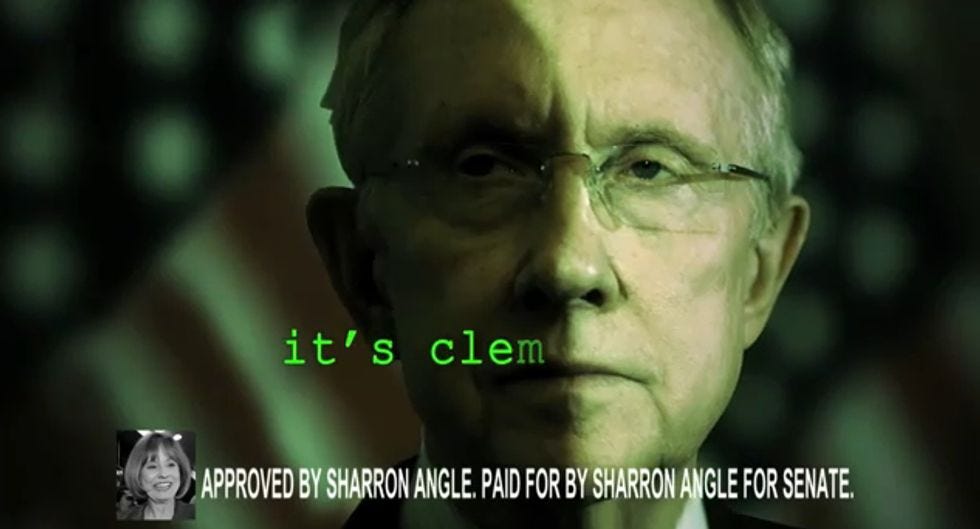 But what's the scariest part of this ad? The man you think is Harry Reid isn't even him at all! IT'S CLEM!