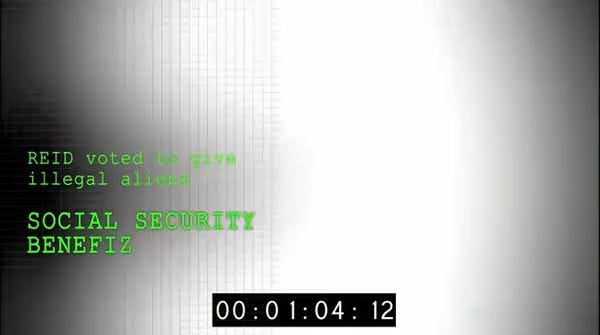 Ah yes, in the epic battle of Fearful Podunk Nevada White v. Scary Mexicans On Security Tape In Gang Clothing, Harry Reid has joined up with the latter. And yet, Harry Reid looks like a normal white person? And yet he has not defunded these important green security cameras that are keeping our borders safe? But he HAS ALSO funded voyeur cameras watching our children at school? This ad raises many questions that can only be answered by looking at certain frames of this video.