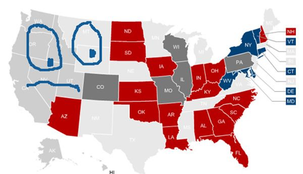 10: 40 PM -- But the states with all the people and money (the "liberal elite states") are still pretty heavy wins for the Democrats. (Florida had people, but no money.)