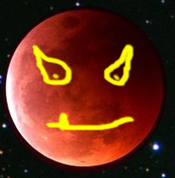 According to news reports with no references for the figures they vomit out, tonight's combination of the full lunar eclipse and solstice is the first in either 372 years or 456 years. Who knows, right? Whatever the case may be, we can be assured that John McCain was just a baby pooping on himself the last time this happened, so in many ways tonight is history repeating.