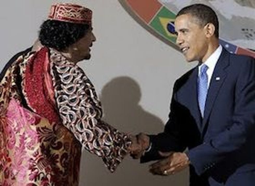 The bloodiest, craziest, most Gaddafiest revolution of 2011 (so far) got a little closer to the end as the West's favorite dictator/basket case supposedly begged for a deal to let him and his family escape Libya alive. The rebel leadership thought about this for several seconds and then said, "Nah, dude." Let this be a lesson to dictators and despots around the world: Don't sendmilitary jet planesto bomb your own people just before asking them for a "deal." According to theWall Street Journal, "The rebel-led governing council, based in Benghazi, in eastern Libya, rejected the invitation and said it wasn't sincere." Meanwhile, the Obama Administration is maybe thinking about sending NATO some memo or whatever, perhaps a text message. If Obama loves Ronald Reagan so much, you would think Obama might remember how the Reagan Administration bombed thehellout of Libya in 1986, just to show everybody.[ Wall Street Journal ]Remember how your fake-liberal boyfriend Barack Obama was going to close down the international torture-prisons the United States operates all over the world, starting with the evil-ass Gitmo? Ha ha, just kidding! The Obama Administration will start military tribunal kangaroo court torture executions at Guantanamo again, because why not? (It's "Political Reality," ha ha.) [ BBC News ]