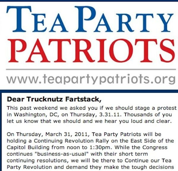 Shall we have an equally lame "Wonkette Gay Freedom/War On War/Sex Thing/Lunch Picnic" at the same time? The Tea Party Patriots inform us that they've really organizednothingat this point, so we can really "set the agenda." For example, maybe we should make it a "Paintball Competition," for freedom.