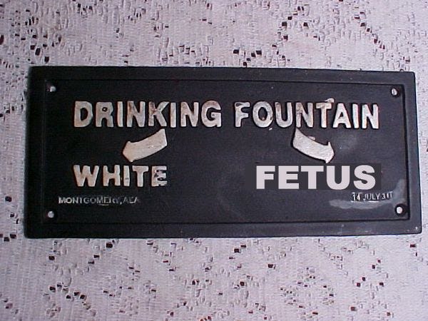 Because a state lawmaker read "a magazine article on such practices in China and India," Arizona is set to ban abortions made on the basis of the race or sex of the fetus. Not that there's evidence women in Arizona abort a fetus based on its perceived race or sex; there isn't. But this is a matter of CIVIL RIGHTS and Jan Brewer and her Republican legislators are not going to stand idly by watching those brave fetus freedom-marchers get hosed down by police, handcuffed at the lunch counters, refused entry into segregated "fully-developed-child only" public schools, and turned away from playing golf at Augusta National. Doctors better be careful not to give abortions to women who believe in anything but absolute equality for all people, or they're going to be thrown in prison. Oh, and here's a riddle: Why do so many minorities in Arizona have abortions? They're racist and sexist!