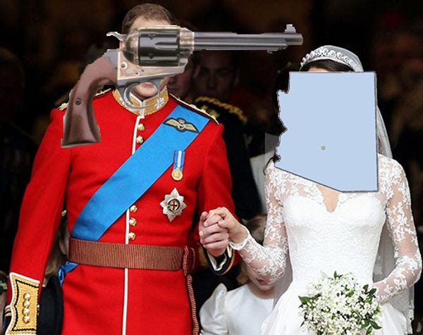See, somebody had their priorities in order! This "waning hours" thing sounds like it would make for a great device in a romantic comedy. Arizona and its gun should write a screenplay about their beautiful love and all the jealous people with bullet wounds in their brain who tried to stop them. That would teach them to not stand in the way of love!