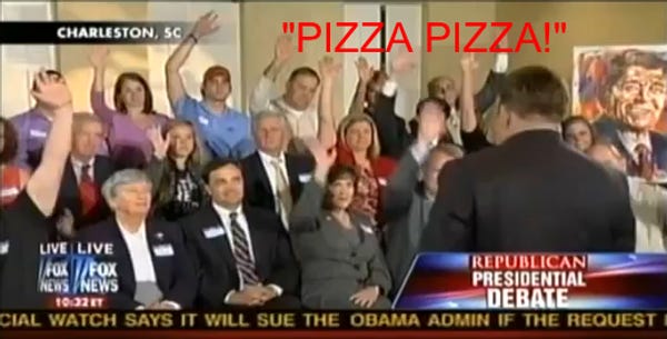 So what does this all mean? Americans love pizza, obviously, and would love to elect it president. Unfortunately, as much as everyone loves the Constitution, it says pizza is not eligible for the office. So Americans will just have to settle for electing pizza's friend, Herman Cain.
