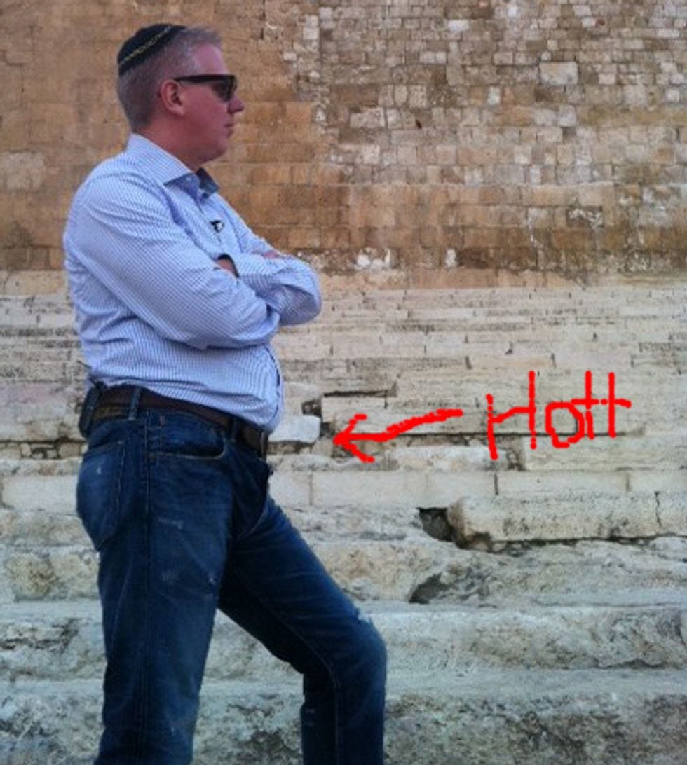 As part of some quest to search for meaning in his life in the wake of losing his teevee conspiracy show, Mormon comedy sensation Glenn Beck is wandering around the homeland of the Native Americans, Israel. This is all being breathlessly chronicled by The Blaze, Beck's news-esque webzine. (BREAKING: Glenn ate some ice cream.) "'It’s the axis point of the world,' he explained by phone as he outlined the agenda that triggered this trip." Uh, what? Also, aren't the North and South Pole the axis points of the world? Nothing about this makes any sense. Nothing.