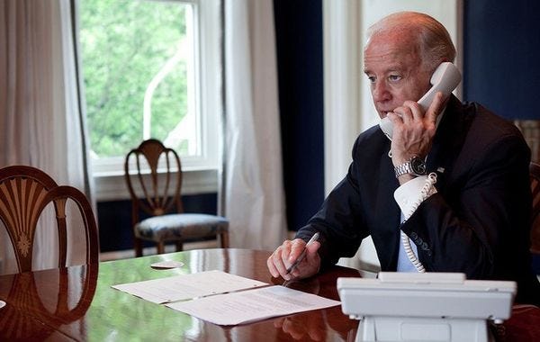 So what's Delaware Devil Joe Biden up to this week, while Barack and Michelle are rocking out with the Queen in England and crashing their limo into Ireland and pounding Guinness? Poor Joe is just stuck with a stack of Obama's "while you were out" messages, and he's got to call everybody back! Bummerz.