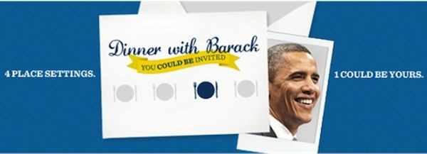 Times are tough and getting significantly tougher, so it's a challenge for the Obama campaign to come up with some fundraising stunts that will attract any attention in these desperate, weird times. He could put his dong on Twitter, we suppose, but that's not exactly the right kind of attention. What the Barack Obama campaign machine needs is some kind ofaspirationalmessage, perhaps something along the lines of "Hope" and "Change" but without the actual emotion of Hope or the prospect of actual Change. Oh, we know! Have a contest, and the winner gets a plate of food.
