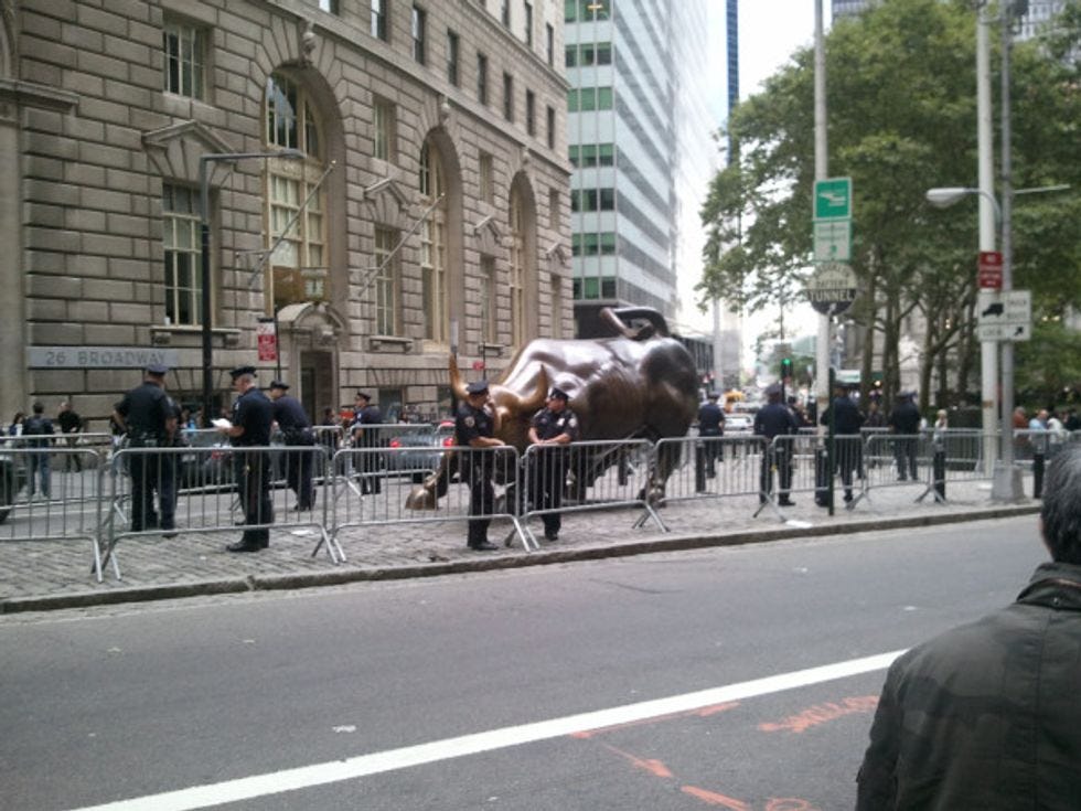 At least America's favorite baby Jesus statue, the Golden Bull survived the peaceful hippie onslaught, thanksandgoodjob NYPD: