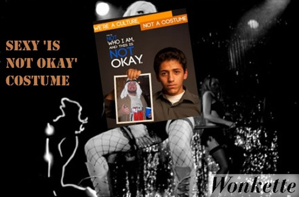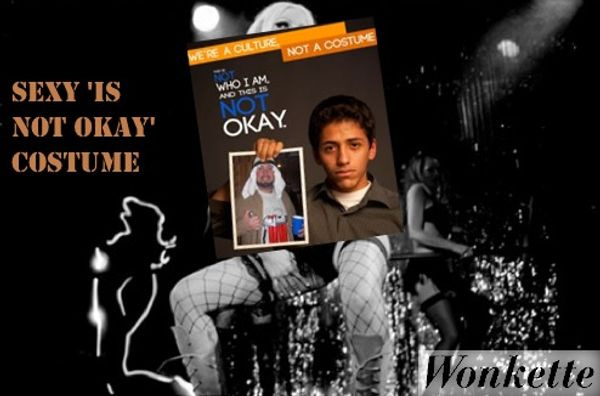 Sexy Ethnic Protesting People Using His/Her Cultural Costume As a Halloween Cultural Costume: One thingpeople don't like this year is other people dressing in the "native costume" ofotherpeople. So, it's no longer allowed to be a Sexy Indian Chief or a Sexy Rabbi or a Horny Eskimo or a Slutty Russian Hooker or anything like that. Instead, use this idea we stole from some insane comment on Metafilter, and make a "styrofoam box poster" of these "It's Not Okay" posters, and then otherwise dress as an "Extra-dimensional whore from the Black and White Lodge."
