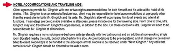 Here is some particularly gross gossip unearthed by the Smoking Gunthat somehow met the "news" qualification at the Washington Post: according to this rider from a 2010 speaking engagement in Missouri, Newt Gingrich's lengthy demands include two bathrooms in his hotel room, because he is just that full of shit. But all things considered, this is the least disgusting thing we have learned about Newt Gingrich so far in history. A quick six-second search is guaranteed to turn up something even worse... let's see, oh here we go, apparently Newt Gingrich is breaking the law now by announcing he wants John Bolton to be his Secretary of State?