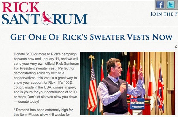 Rick Santorum Campaign Now Selling Sweater Vests