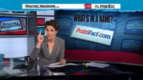 DO NOT MISS THIS: So PolitiFact is the worst (duh), and Rachel Maddow is absolutely the best (also duh). But yesterday not only did she manage to employ the phrase "After the economist Jared Bernstein and half of the English speaking internet L'd oh so O L at PolitiFact for screwing this up"—yes! she said that! live ! on the air !!—she then delivered just the loveliest lecture:
