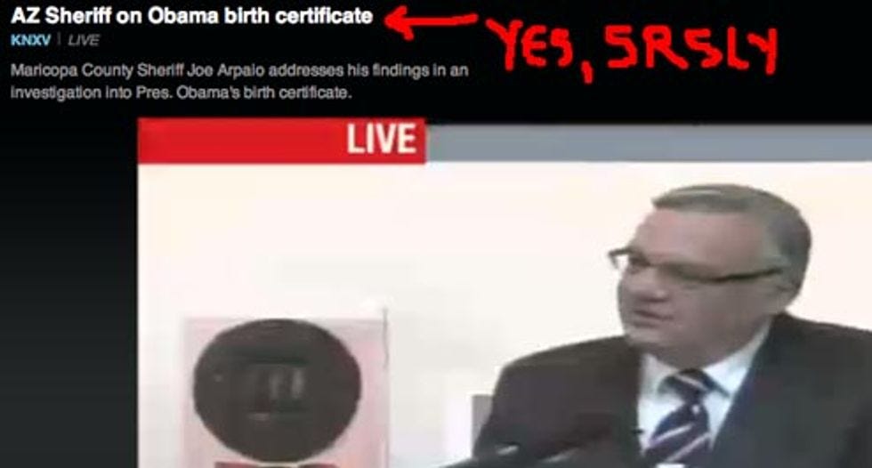 In conclusion, CNN is run by brain-damaged space wombats and Joe Arpaio still thinks that Barack Obama's birth certificate is fake, the end.