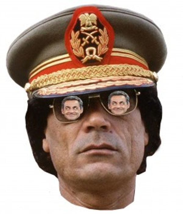 The first sniff of intrigue actually came in March 2011 in the form of a TeeVee interview with mad dog's puppy, Saif al-Islam Gadhafi, after Sarkozy recognized the Libyan opposition's National Transition Council as a legitimate government. Son of a madman had this to say to Monsieur Sarkozy: